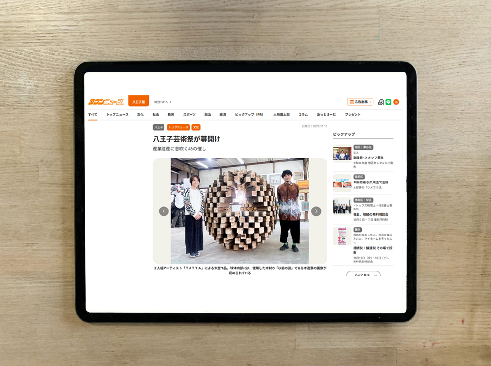 TATTAの八王子芸術祭の取り組みが八王子タウンニュースに取り上げられています。